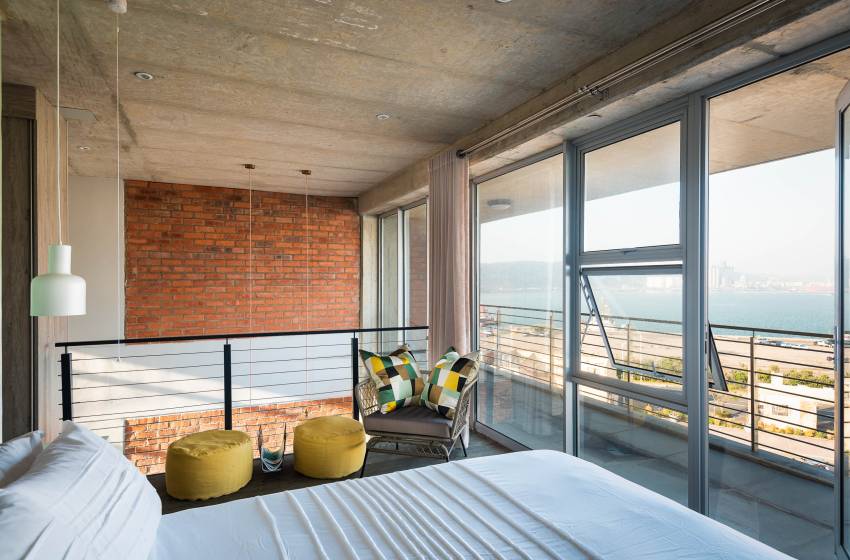 Boasting views of the Indian Ocean from the balcony, this lovely double story apartment has a spacious open plan design with a fully equipped kitchen for easy self-catering, an 8-seater dining table, and a comfortably furnished lounge that opens onto the balcony. Exposed brick and a light decor aesthetic with touches of bold colour create a truly beautiful space to come home to. The balcony is the ideal spot to take in the breathtaking views of the Indian Ocean while enjoying a glass of wine in good company.