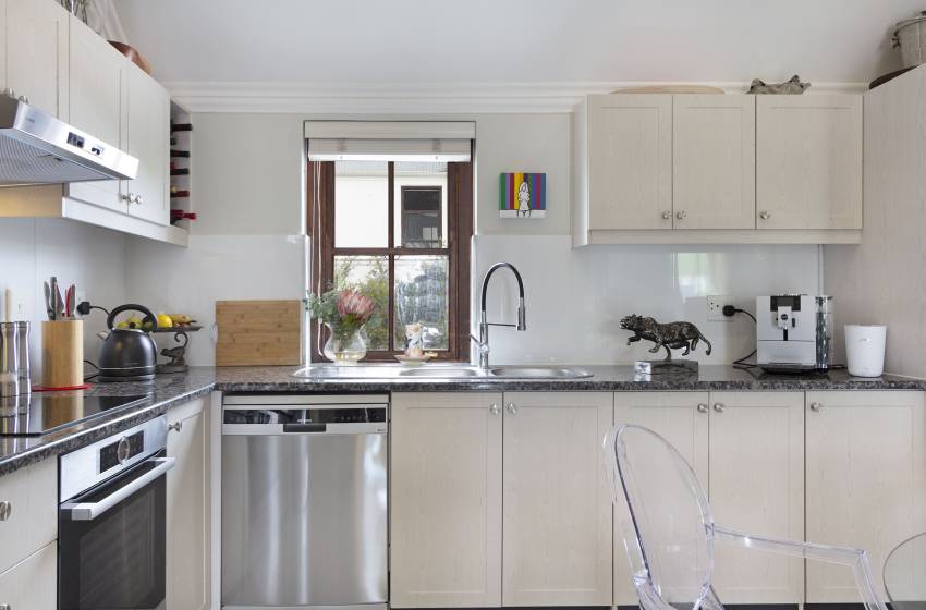 With an open-concept living area and kitchen, this one-bedroom apartment offers visitors a comfortable environment, with an inverter to assist with any power issues. The kitchen is fully furnished for your self-catering requirements, including a Jura coffee machine. A TV with DSTV and WiFi is located in the living room with a low shading system, allowing you to spend a great evening at home with your loved ones. Two single beds can be combined to form a double bed in the bedroom, which also has access to a private, en suite bathroom. Winelands Golf Lodges 32 has unique features that make it stand out such as Alice fence windows preventing any mosquitoes from ruining your stay.