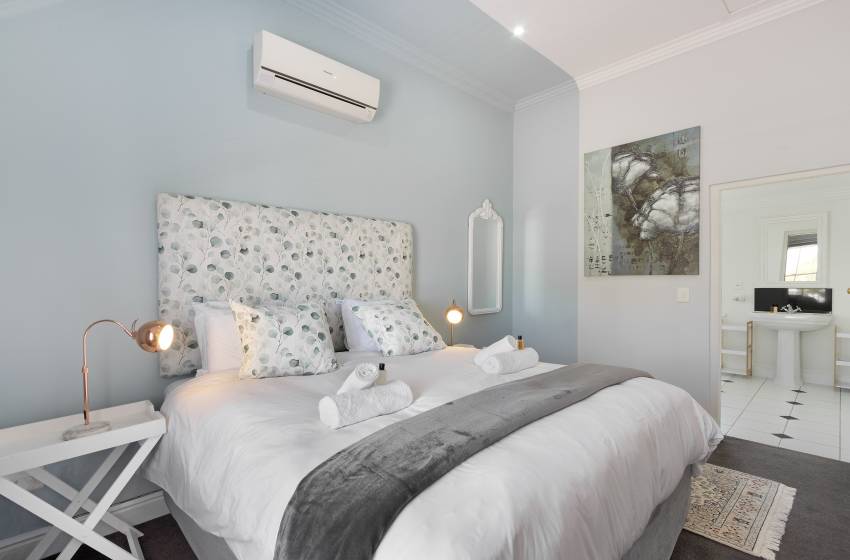 The bedroom area is modern and cosy and receives ample amounts of natural light, while being provided with air conditioning facilities to dial in your perfect climate. The bedroom provides you with access to the beautiful, en-suite bathroom – housing a bath, shower, toilet and vanity.