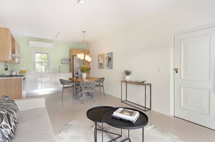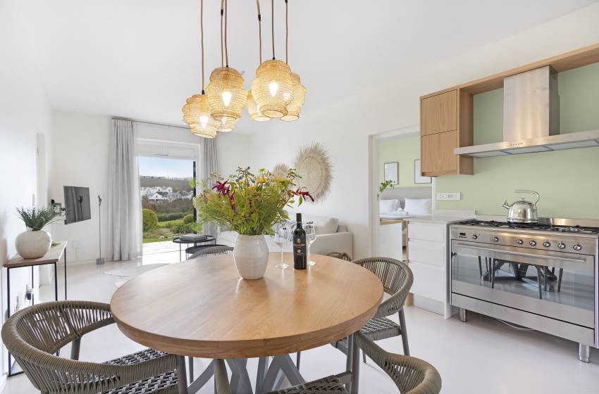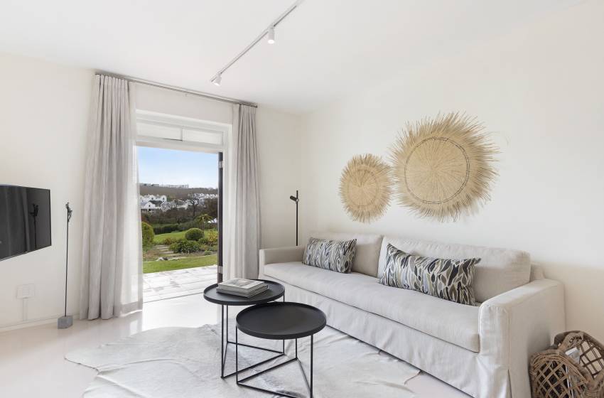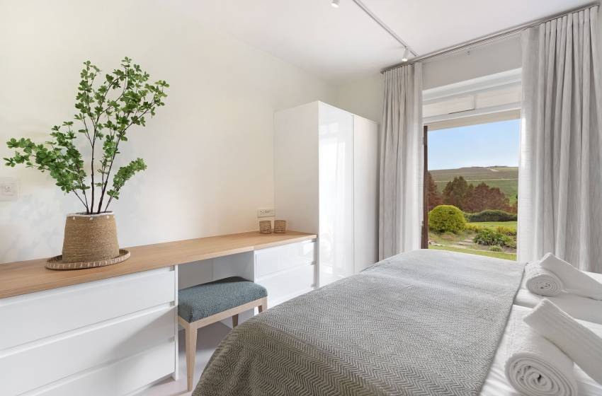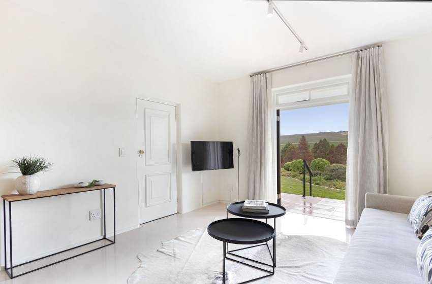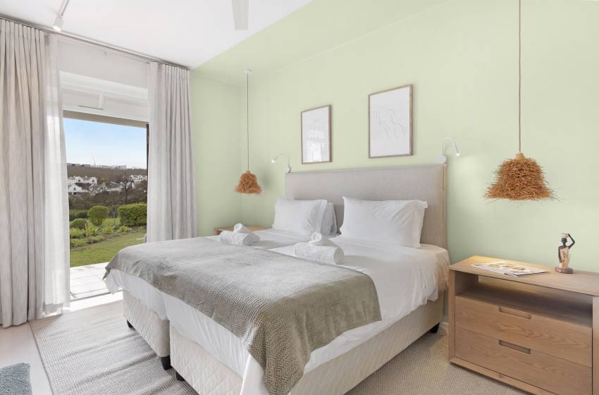 With an open-plan living room, dining area, and a kitchen that leads onto a spacious patio where you can enjoy a braai. This one-bedroom apartment with a mountain view, and a view of the 10th tee of the golf course, offers its visitors a cozy atmosphere. There is a dining table in the kitchen that can accommodate four people and is fully furnished for your self-catering requirements. The living room has a TV, with DSTV access and there is WIFI available, allowing you to spend a relaxing night indoors with your loved ones. A king-sized bed may be made from two three-quarter beds in the bedroom, which also leads to a private en suite bathroom. A sliding door opens up to a smaller garden where you may take in lovely views of nature as soon as you wake up. All visitors staying on the estate have access to a community pool area if the weather permits.