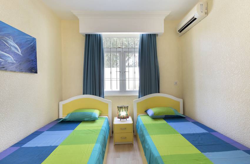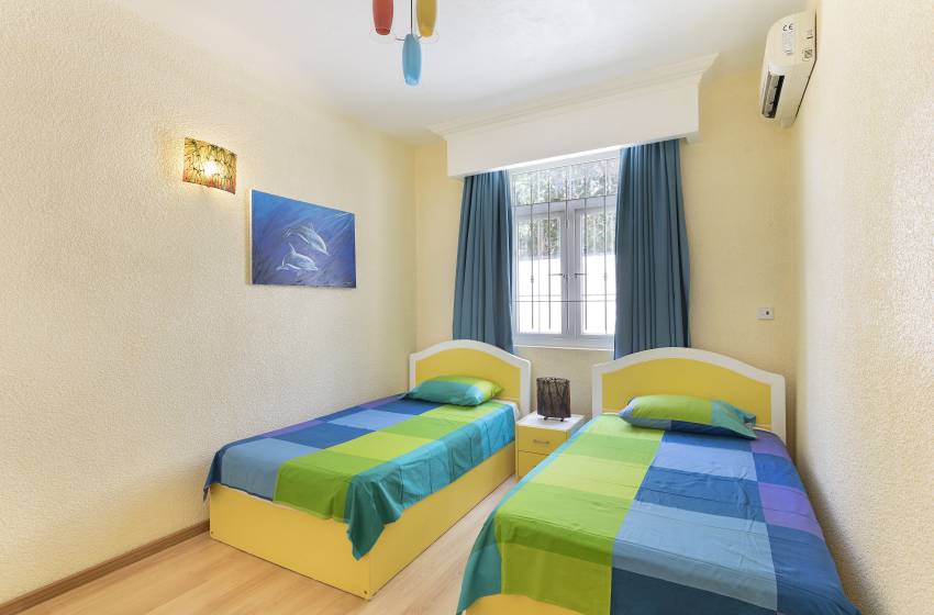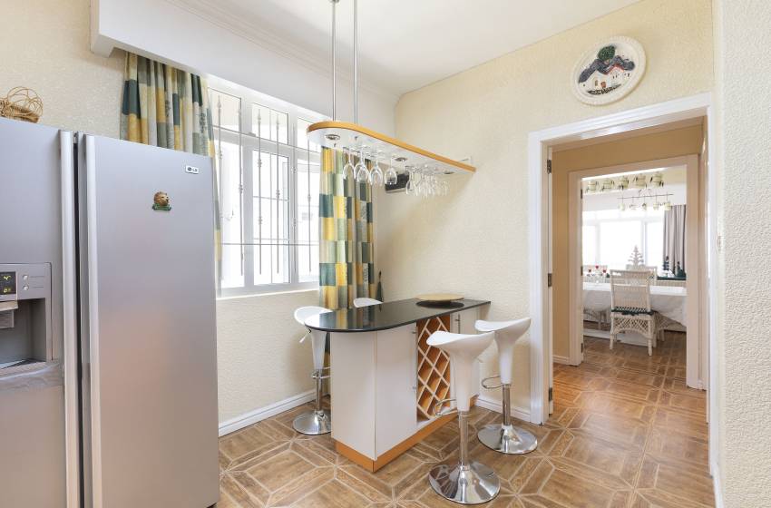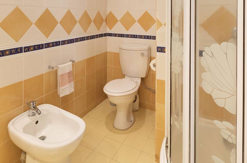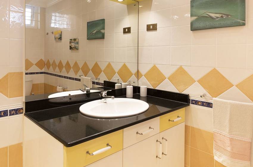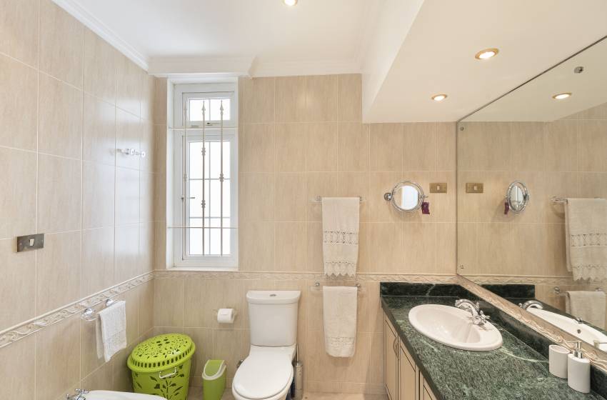 All 3 bedrooms have air conditioning units to keep you cool on those hot summer days ensuring a peaceful night’s sleep. Bedrooms one and two include a king size bed and a double bed and have access to a balcony. Bedroom 3 offers two single beds with large windows allowing an abundance of natural light into the space. There are two shared bathrooms for guests to make use of, one bathroom features a shower, toilet and basin whereas the other includes a bath, toilet and basin. Fresh towels and crisp linen are included in your stay.