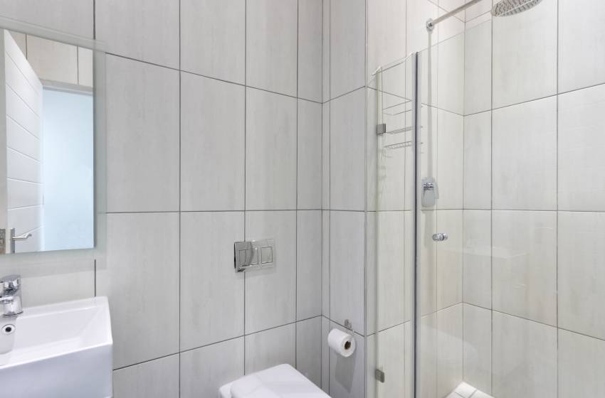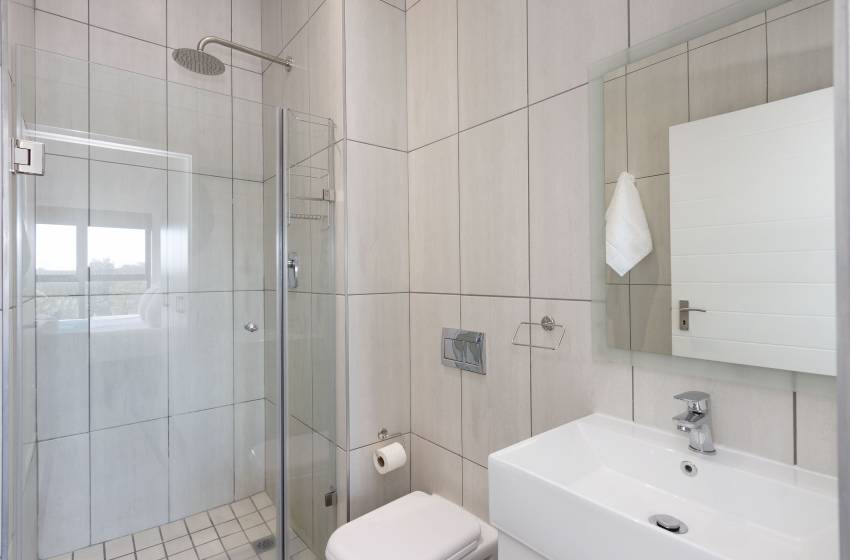 The chic holiday flat in Bloubergstrand offers views of Blouberg and is well-furnished. The main bedroom hosts a queen bed with an en-suite bathroom, whereas the second bedroom consists of a double bed and a shared bathroom. There is a shower, toilet, and sink in both bathrooms. There is an open-concept living space that leads to a balcony. With a fridge, stove and hob, microwave, kettle, and toaster, as well as plates, cutlery, and glassware, the kitchen is fully furnished for self-catering. In addition to having a flat-screen TV with satellite channels and Wi-Fi, the lounge is also comfortably decorated.