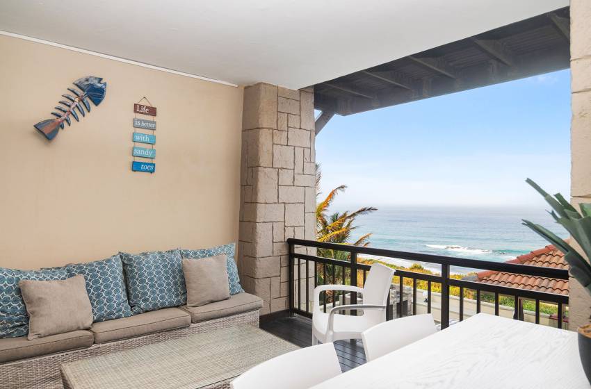 Located in Ballito's Westbrook, you will find this cosy three-bedroom offering open plan living with a comfortable balcony overlooking the pool, boasting lovely sea views.