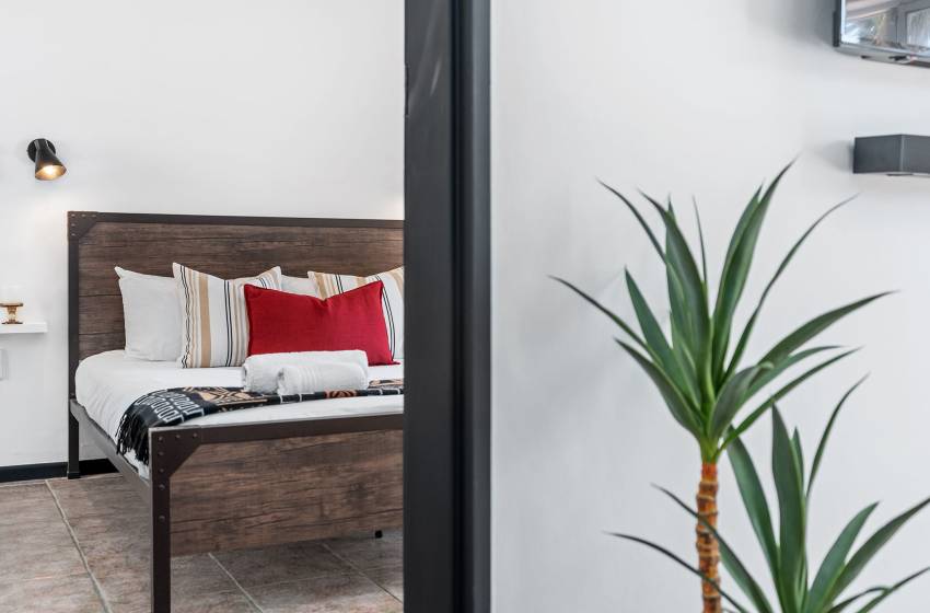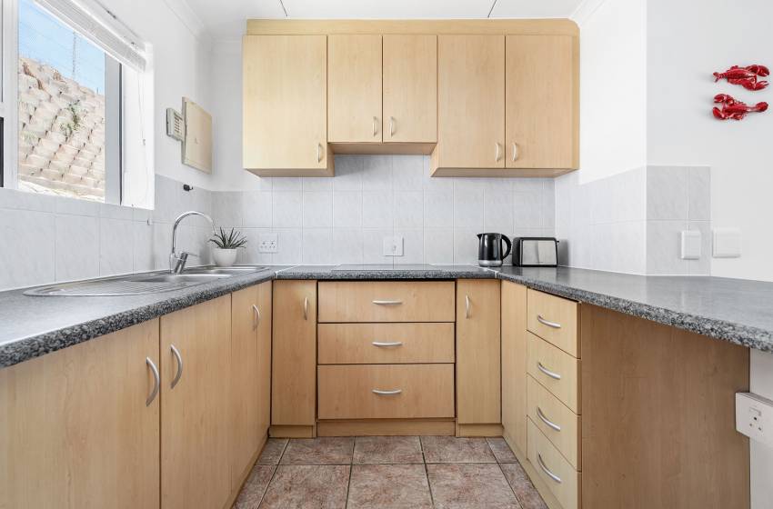Upon entering the apartment, you are welcomed by the open-plan living space. The kitchen is fully equipped with ample storage and counter space, fitted with everything you need for a comfortable self-catering experience.
