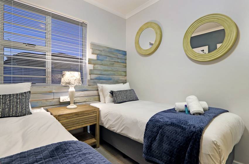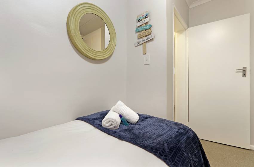 This beautiful two-bedroom apartment comes equipped with everything you could need for a self-catering holiday in Cape Town. The main bedroom is stylishly decorated with bright accents and has a queen-size bed. The second bedroom has two single beds and features amazing sunlight to compliment the seaside theme.