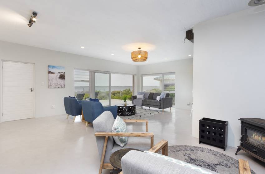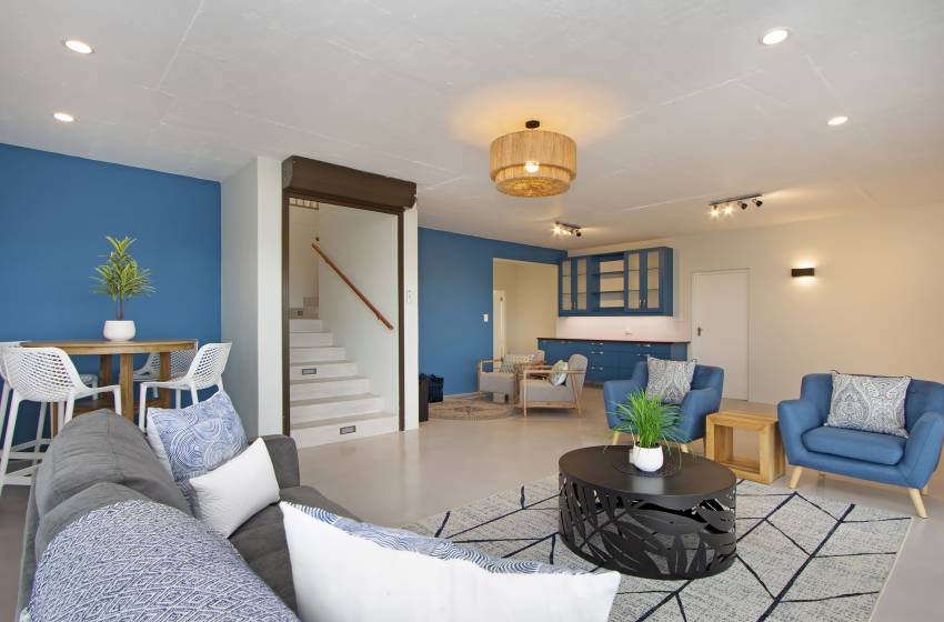 Bold and bright colours will welcome you upon entering this lovely home. Situated a stone’s throw away from the ocean, the beach sand glitters in silver colour, providing a picture-perfect backdrop visible from almost every corner of the house. A step out of the front door and a short walk across the front garden takes you to coastal rock pools and further onto the beautiful swimming beach of Silversands.