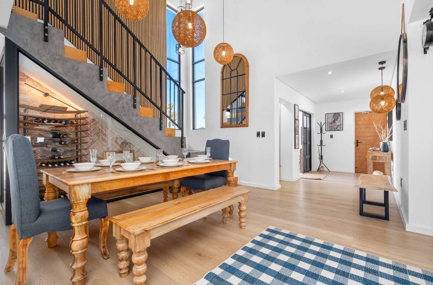 Upon entering, guests are welcomed by a spacious, avantgarde living space featuring a dining area alongside a fully equipped, contemporary kitchen catering for all your culinary needs.
