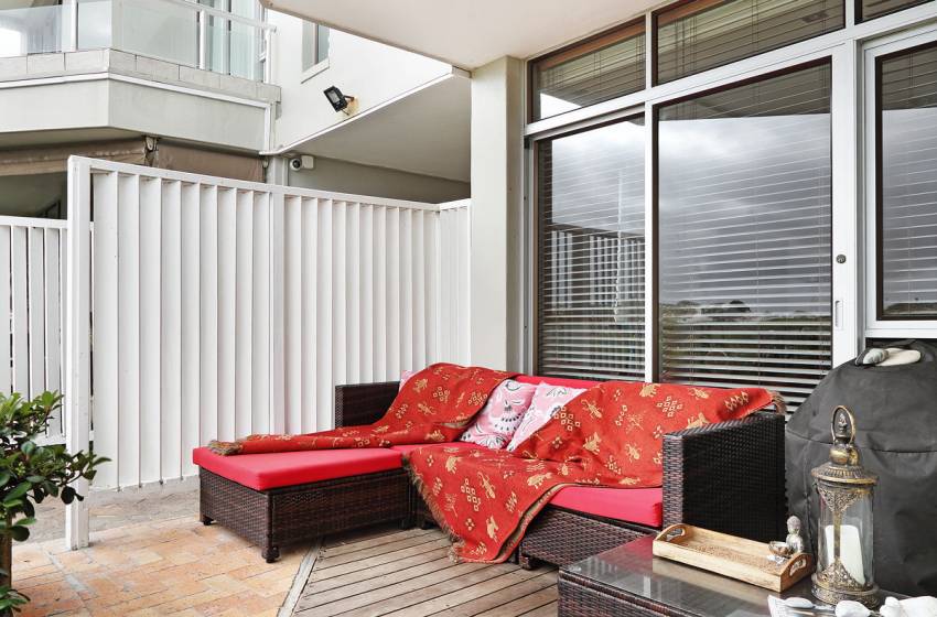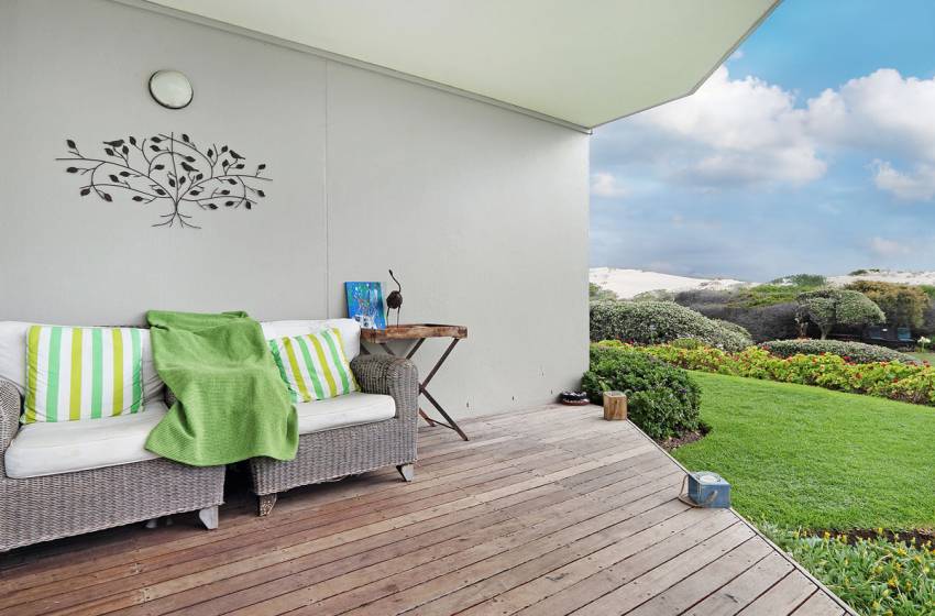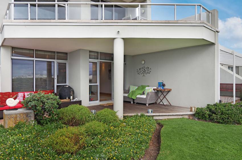 Upon entering this modern, two-storey self-catering apartment, guests will immediately be met with views of the ocean, while the open plan living areas are stylish and accommodating to guests' needs. Enjoy DSTV connectivity on the flat-screen TV in the lounge, which opens up and leads to a furnished deck with a braai facility and lush garden with direct access to the beach. The dining area can seat up to 6 people, while the full kitchen consists of all the essentials needed to whip up a delicious meal.
