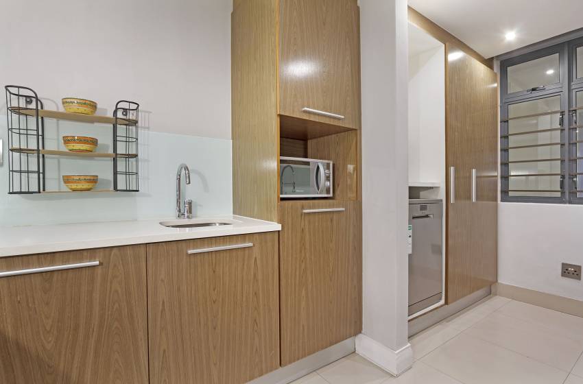 Eden on the Bay 171 is a beautiful two-bedroom, two-bathroom 120sqm apartment that comes fully equipped with everything you could need for a relaxed and self-catered stay. The main living area has an open-plan kitchen, dining area and lounge; complemented by dark tones, touches of natural wood and ample natural light. The kitchen is fully-equipped with every amenity needed, including a dishwasher and washing machine for guests convenience. The lounge boasts a flat-screen TV and a large sliding door leading to a furnished balcony with stunning ocean views.
