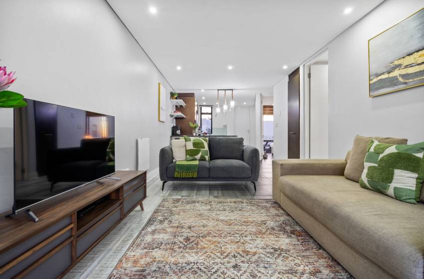 Both bedrooms are generously sized and feature sliding doors, each furnished with a queen bed. One of the bedrooms includes balcony access - what better place to enjoy your morning coffee? Both bathrooms continue the home’s stylish decor, with one featuring a shower and the other a bathtub.