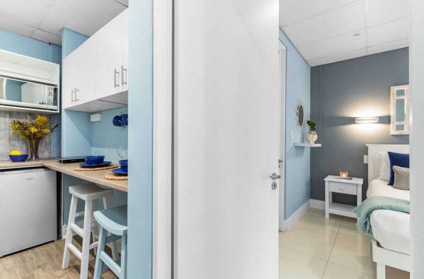 Eden on the Bay is situated on the Big Bay beachfront in Cape Town. This family-friendly shopping centre is mostly an open-air centre and perfectly complements your stay. Located in the sought-after Eden on the Bay centre, you will find this one-bedroom studio apartment in Big Bay, Bloubergstrand.