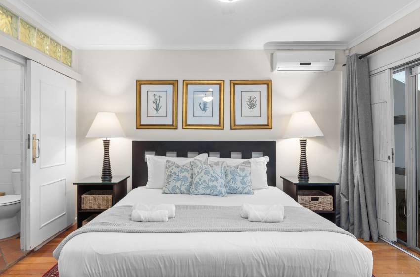 This two-bedroom apartment is designed to accommodate up to four guests, ensuring a cosy and intimate stay for families or friends. The master bedroom features an ensuite bathroom, air conditioning, and a plush king-sized bed, offering ultimate comfort and privacy. Meanwhile, the second bedroom boasts a queen bed, providing a restful retreat after a day of exploration.