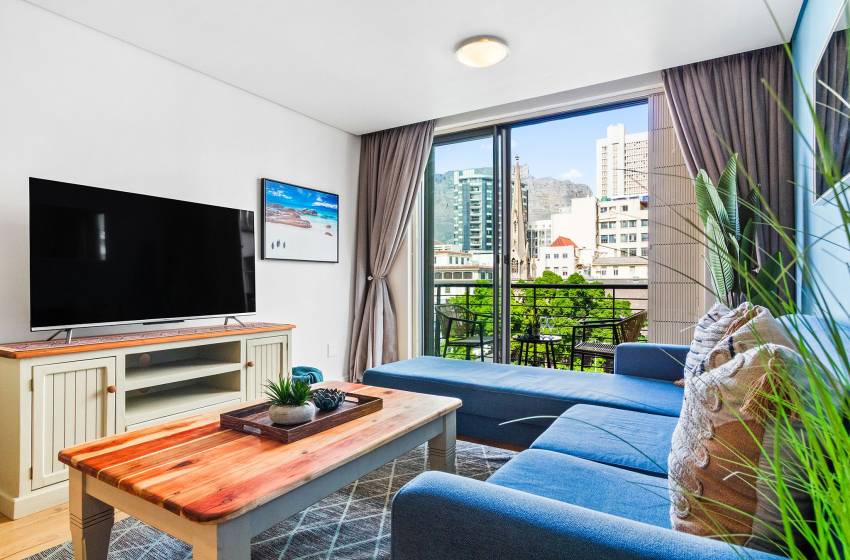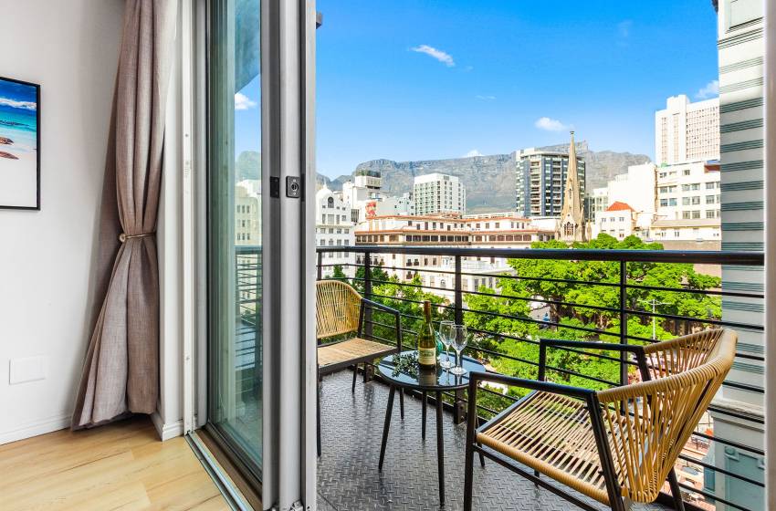 This one-bedroom apartment offers a charming self-catering stay in the bustling City Centre of Cape Town, ideal for a travelling couple looking to immerse themselves in the vibrant atmosphere.