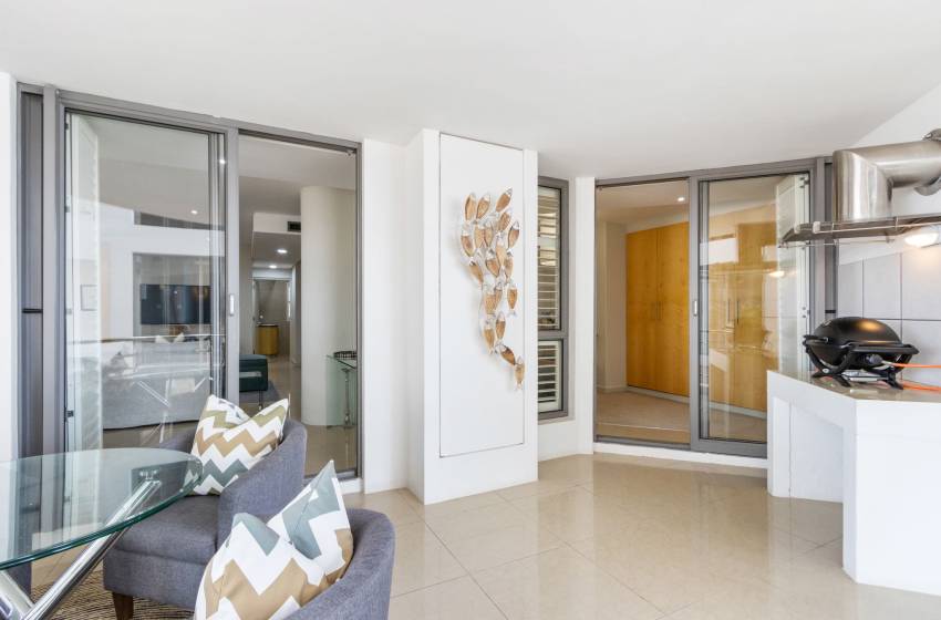 Take full advantage of the sizeable, fully equipped kitchen which includes a dishwasher and all your culinary necessities which looks onto a very inviting lounge area with a cozy couch and a flat screen TV. Enjoy your favourite meals at the intimate dining space that accommodates four guests, which leads out onto a stylish undercover patio area with outdoor furniture and gas barbeque facilities, all while overlooking an area with convenient lift access.