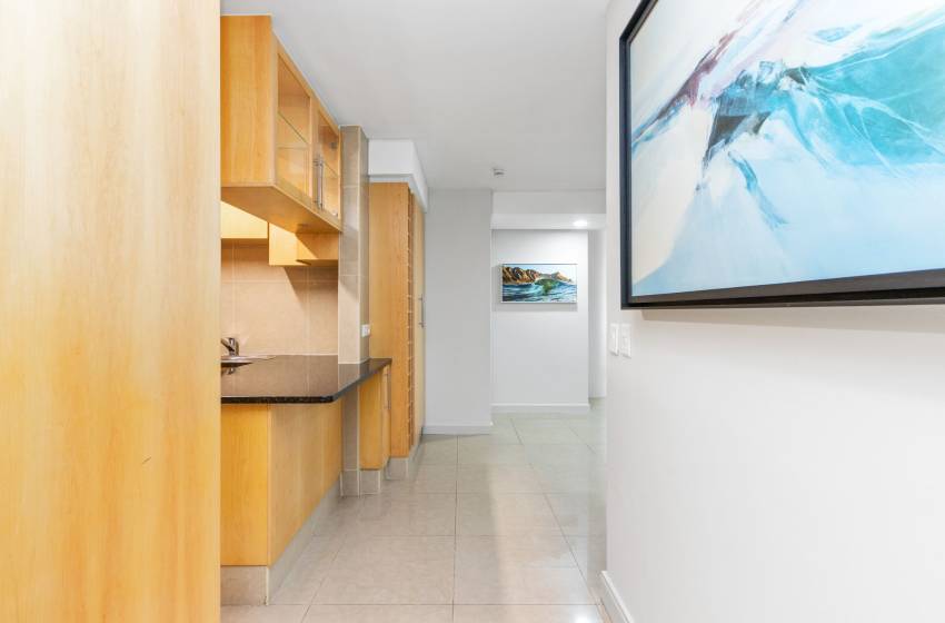 Take full advantage of the sizeable, fully equipped kitchen which includes a dishwasher and all your culinary necessities which looks onto a very inviting lounge area with a cozy couch and a flat screen TV. Enjoy your favourite meals at the intimate dining space that accommodates four guests, which leads out onto a stylish undercover patio area with outdoor furniture and gas barbeque facilities, all while overlooking an area with convenient lift access.