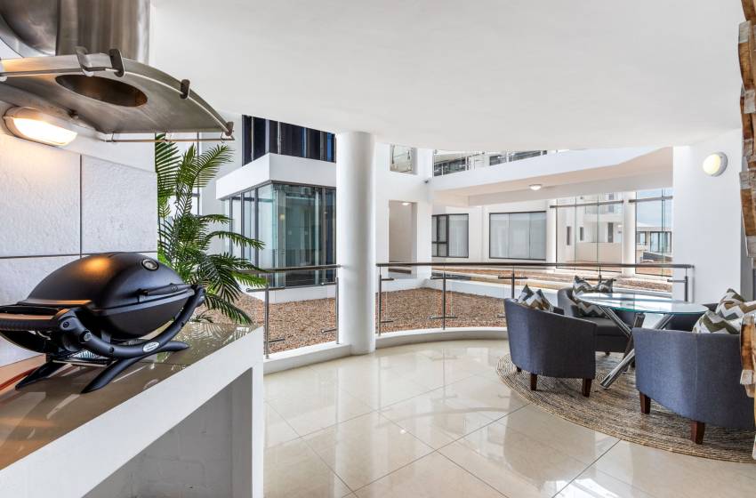 Make the most of the on-site amenities which include a heated pool area with a steam room, a gym, a day spa, a restaurant, a coffee shop, a convenience store, and a hairdresser or venture out and enjoy the majestic 5-kilometer-long white beach, the shoreline is lined with a promenade featuring a variety of restaurants, cafés, and shops, while nearby attractions include Melkbaai Beach, Dune Park with its super tube and mini-golf, and Harmony Park with its expansive tidal pool. For the sports enthusiasts there are an internationally rated golf course to tennis courts, rugby fields, squash clubs, and exciting water sports like board sailing, surfing, power boating, and paddle skiing. The area is particularly popular among surfers, thanks to "The Pipe," a designated surfing spot renowned for its excellent waves.