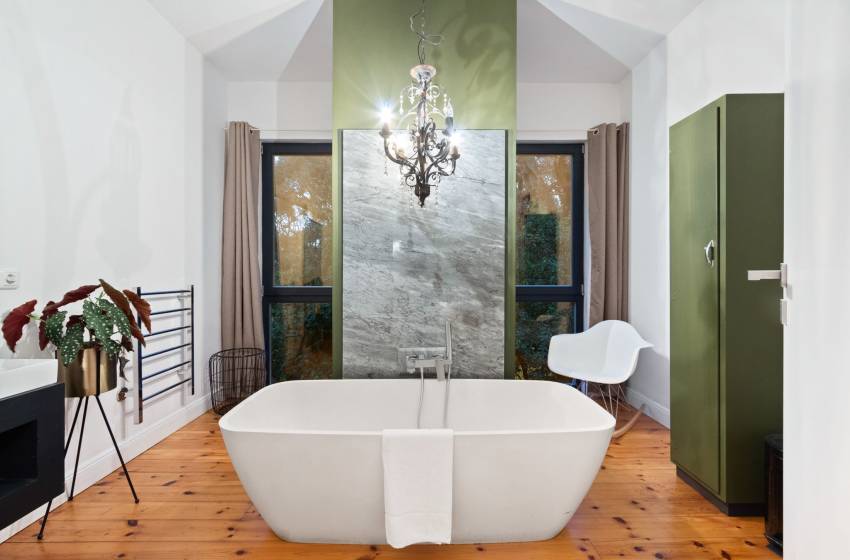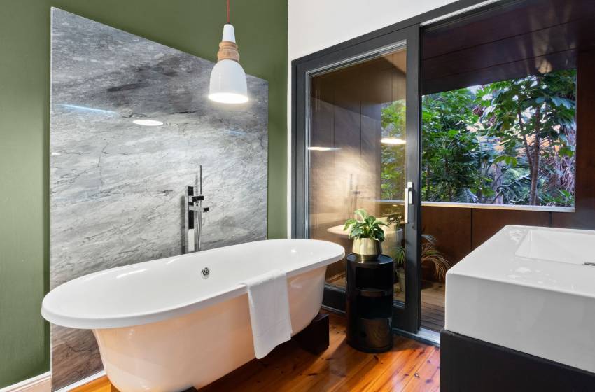 Ascend the elegant freestanding staircase to the first floor, where four of the six exquisitely designed bedrooms await. The master suite is a true sanctuary, boasting a sumptuous king bed and a lavish en-suite bathroom complete with a deep soaking bathtub, a spacious walk-in shower, a sleek vanity with washbasin, and a private toilet an indulgent retreat for ultimate relaxation. The second bedroom invites comfort with a cozy queen bed, while the third offers generous space with another elegant king bed, perfect for restful nights. Perfect for additional guests or friends, the fourth bedroom features two comfortable single beds. These three bedrooms share a beautifully appointed bathroom, thoughtfully designed with a bathtub, shower, and toilet to ensure convenience and style.