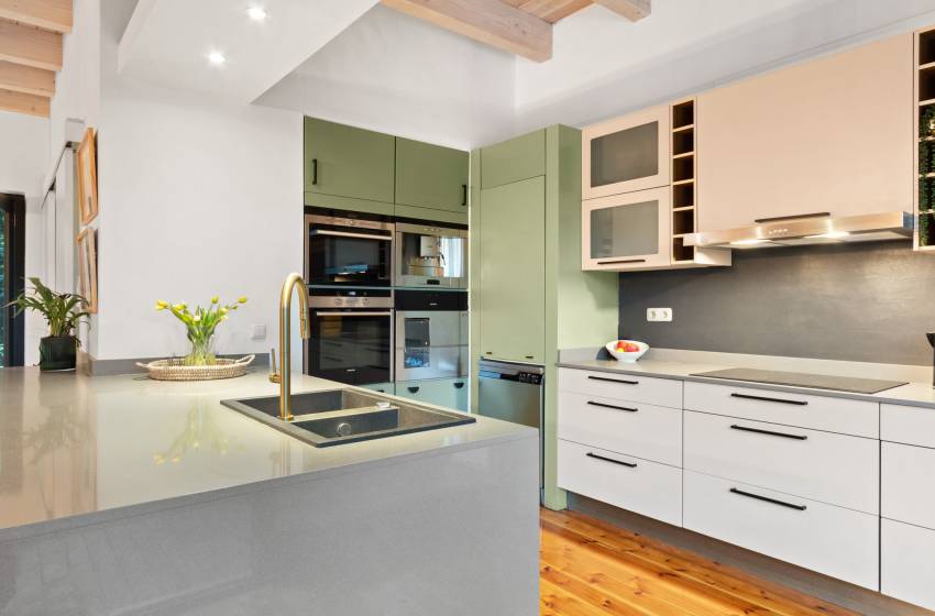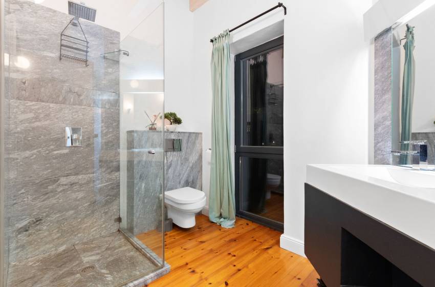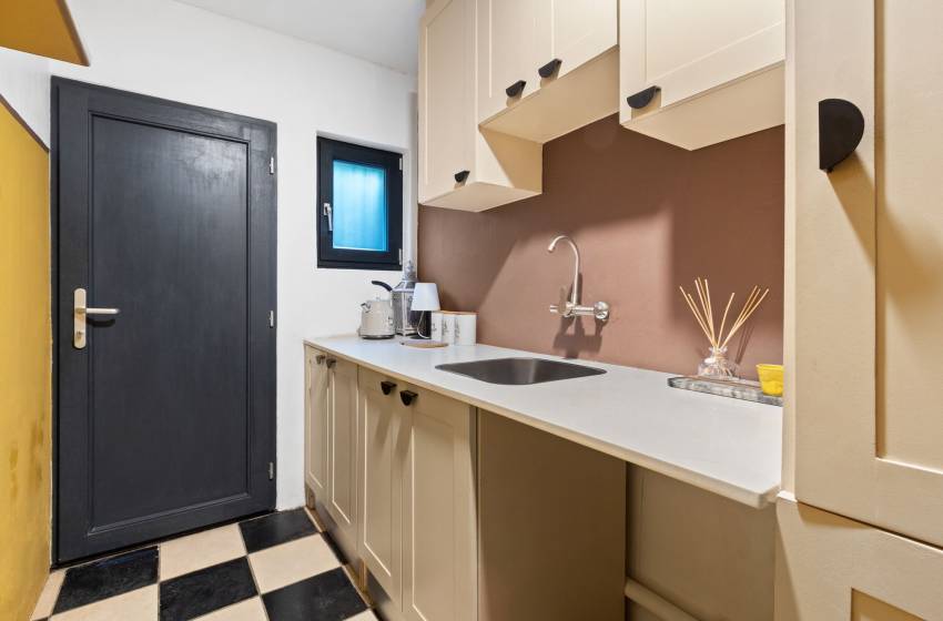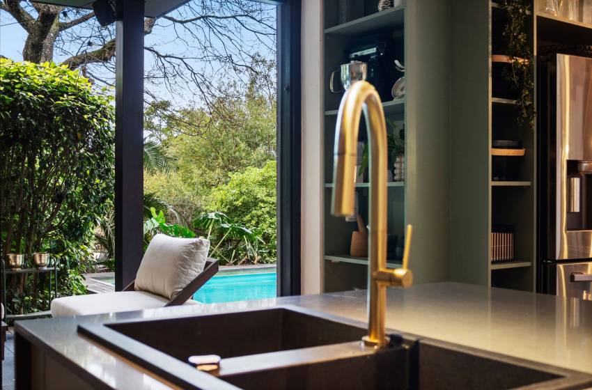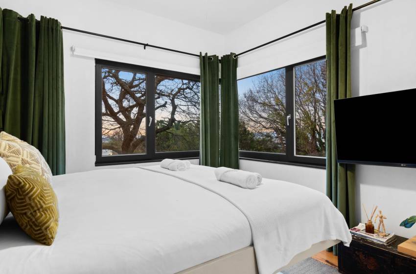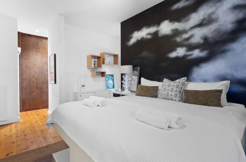 Just steps from the inviting lounge, discover the thoughtfully designed fifth bedroom, each crafted to offer exceptional comfort and privacy for your guests. Accessible directly from the villa’s stunning front entrance, the fifth bedroom located to the left of the front door serves as a fully self-contained flatlet. It features a plush queen bed, a sleek en-suite bathroom with shower, washbasin, and toilet, plus a fully equipped kitchenette perfect for those seeking an independent and stylish retreat.