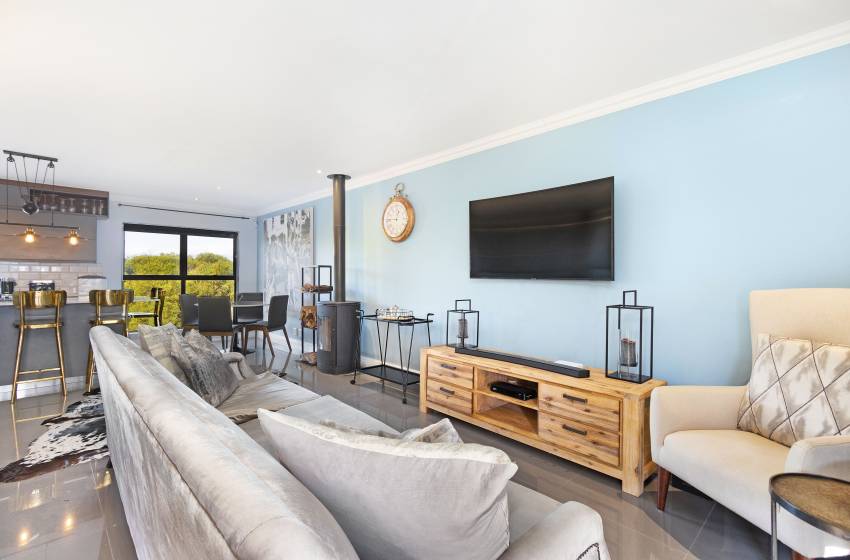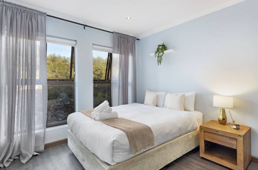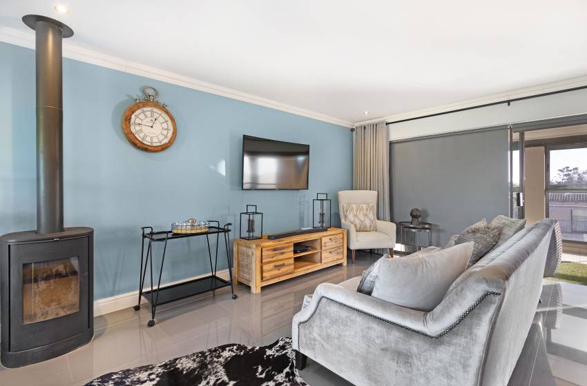 28 Island View is fully equipped with everything guests would require for an unforgettable self-catering stay. The living areas are warm and inviting and consist of a fully equipped kitchen complete with a coffee machine and wine fridge, a comfy lounge area featuring a flat-screen TV, DSTV, and Wifi as well as an indoor fireplace, and 2 intimate dining areas where you can enjoy all your favourite dishes. Following on from the lounge area is an enclosed sunroom as well as a balcony area equipped with a built-in braai.
