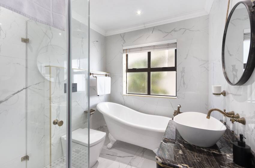 This apartment offers 3 cozy bedrooms and 2 immaculate bathrooms. 2 of the bedrooms include double beds and 1 bedroom offers a queen-size bed. The main bedroom has a glass sliding door leading onto a quaint balcony area. The first bathroom is an en-suit while the second bathroom is shared; both include a bath, shower, toilet and basin. All linen and towels are provided with your stay.