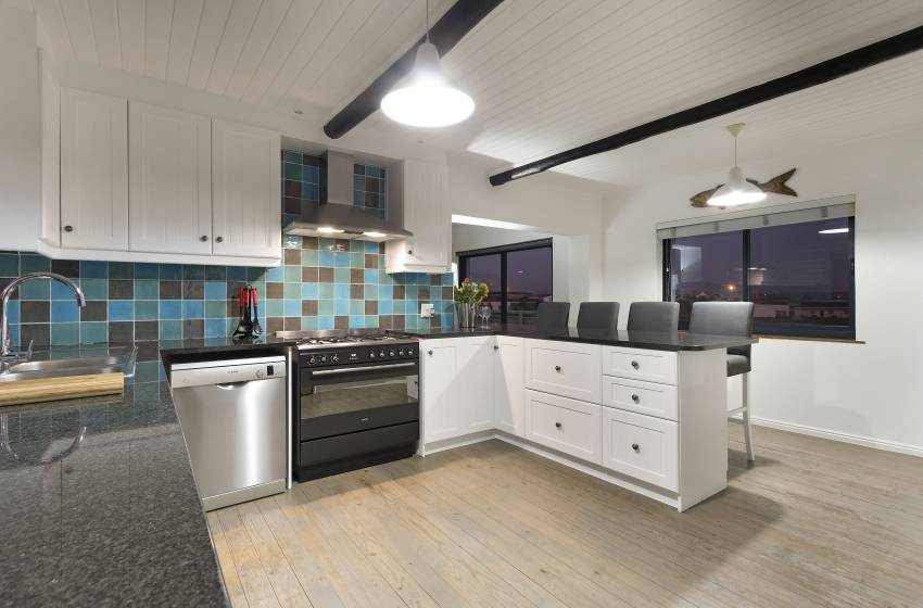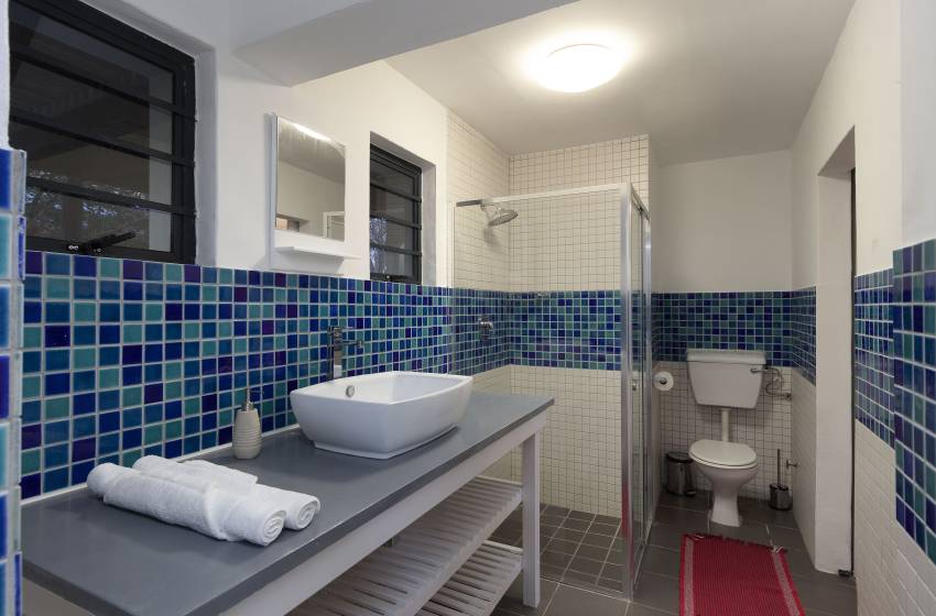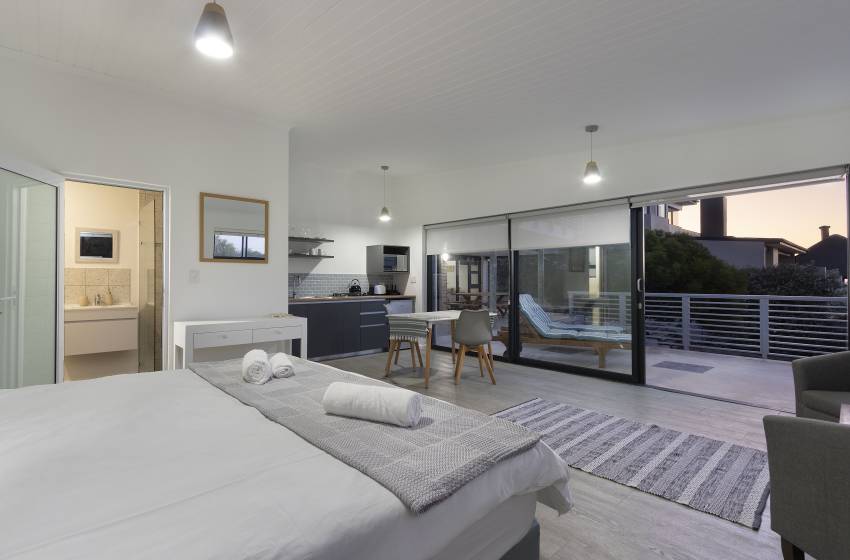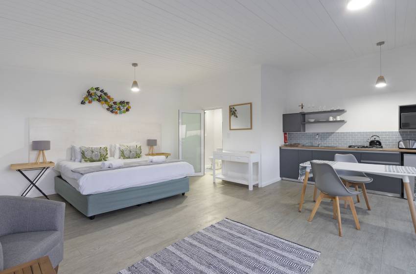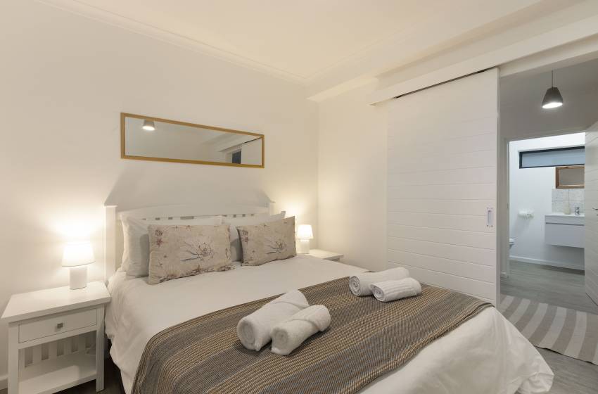 Bedroom 1 comprises of a queen bed with an en-suite bathroom, whereas bedroom 2, with a queen bed, and bedroom 3, with two single beds, share a bathroom with 2 separate entrances. The bachelor flat, making bedroom 4, has an en-suite bathroom, its own entrance, kitchenette and deck. Bedroom 5 is also a flat consisting of a double bed, an en-suite bathroom, private entrance, kitchenette and deck.