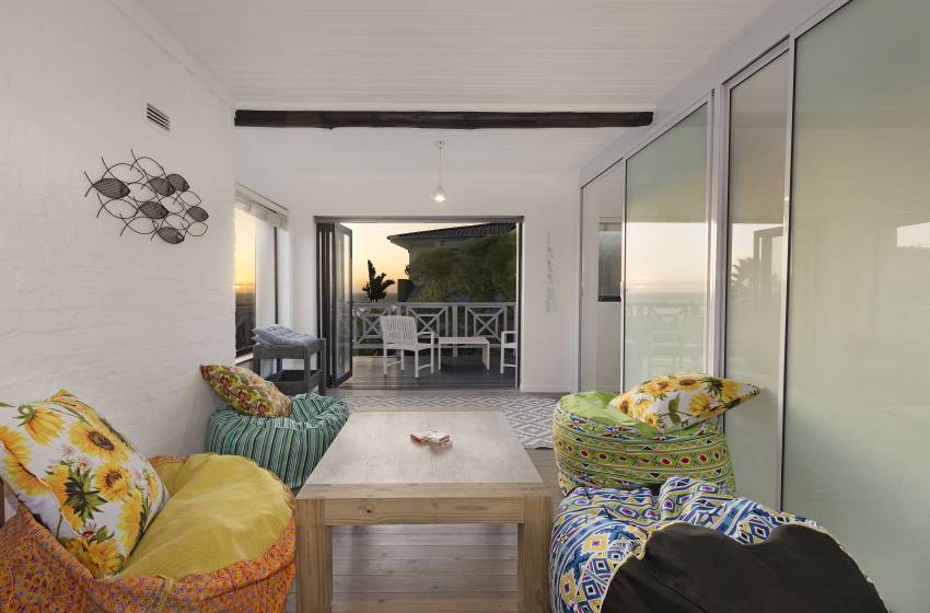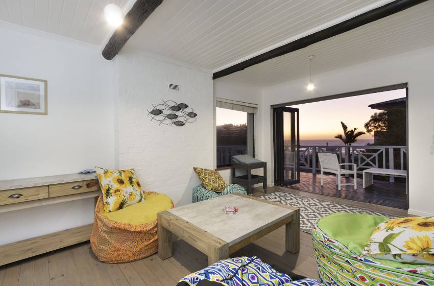 The two decks that Korhaan House has to offer, boast stunning sea views, space for outdoor dining and a gas braai. A beautiful indigenous garden on 2 levels can also be found with its large fire pit and seating, for the whole family to sit around and enjoy. A private servitude path leads directly from the garden onto a beautiful unspoilt beach that offers long walks and stunning Table Mountain views. A leisurely walk up the beach and you will find many varied excellent restaurants and coffee shops.