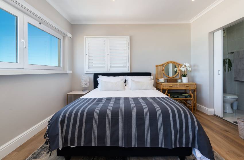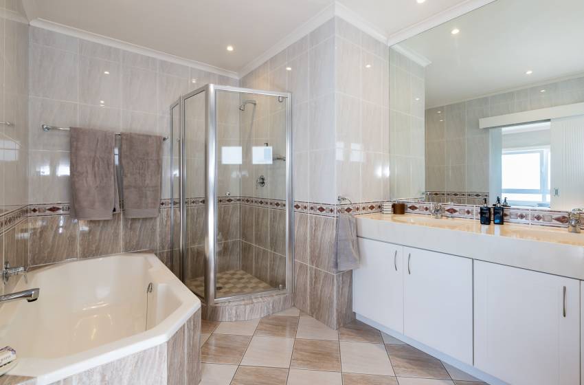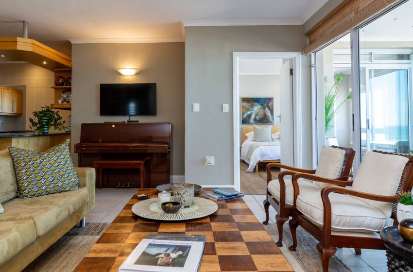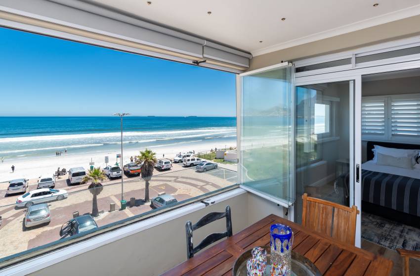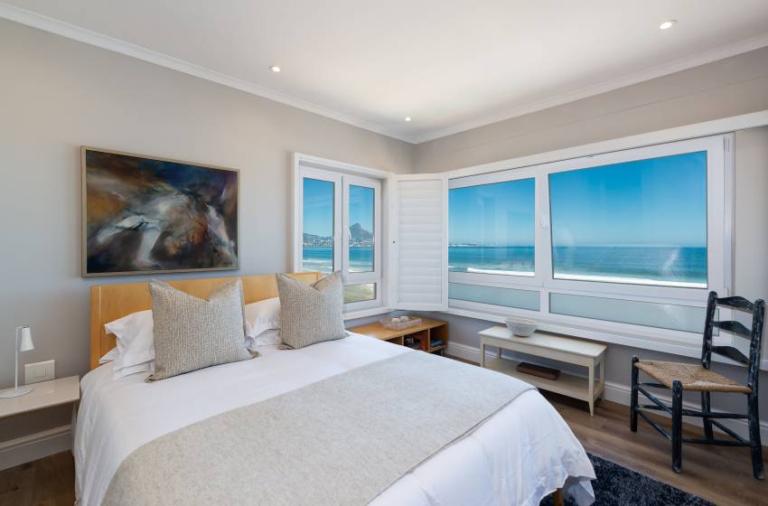 The apartment is beautifully appointed and has battery back-up power for the TV and Wi-Fi, enjoying the most spectacular view of Table Bay and Table Mountain, Robben Island and Blouberg to the north. The view keeps one spell-bound as there is always activity in the Bay, be it beach go-ers swimming, paddle boarding, or kite surfing past your window on windier days. Then there is the Wednesday afternoon regatta for the Cape Town yacht club, which comes sailing past as well as various ships sailing in and out of the harbour and then there are New Year’s Eve fireworks in the V&A Waterfront to keep you enthralled.