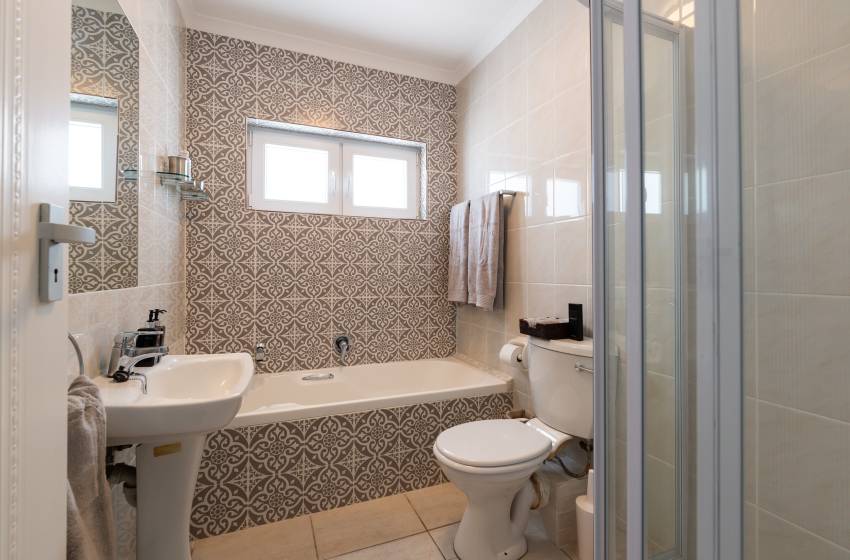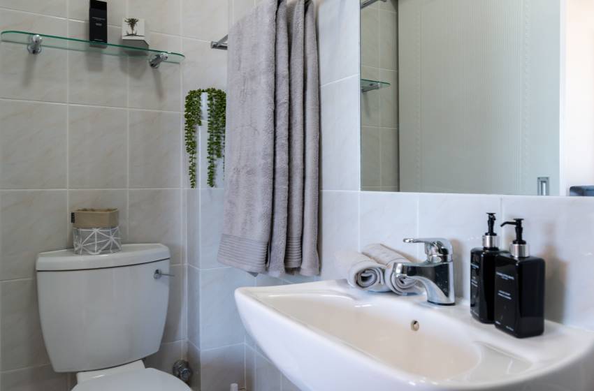 The apartment is 140m2 in size and sleeps up to 6 people. There are three bedrooms, 3 bathrooms 2 of which are ensuite. There is a large open plan dining, study and lounge area leading onto a large kitchen and scullery and a patio area for relaxed lounging and eating. The place is equipped with washing machine, tumble dryer, dishwasher, microwave, fridge/freezer and oven and hob. There is a Smart TV, and wifi. There are two convenient and dedicated parking bays for guests to use.