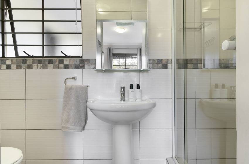 The main living area offers an intimate, open-plan living space. This comprises of a stylish lounge with a smart TV with Wi-Fi providing access to DSTV and YouTube. The kitchen is fully equipped with every essential appliance, as well as a dishwasher creating the ideal self-catering getaway. The lounge area is separated from the patio via glass doors, with enough seating space for 6 guests with an incredible view of the pond.