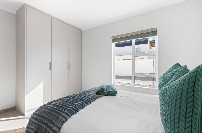 Lampiesbaai Beach House in St. Helena Bay is a beautiful seaside retreat perfect for a family or group of up to six guests. The house features three spacious bedrooms: the first bedroom has a double bed and shares a bathroom, the second bedroom has a queen bed, an ensuite bathroom with a shower, and a private patio, and the third bedroom contains two single beds and shares a bathroom. The shared bathroom includes a shower, toilet, and bath, while the ensuite bathroom in the second bedroom is equipped with a shower and toilet.