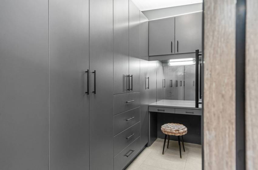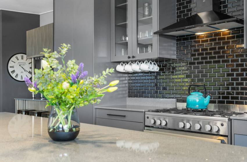 The entire property is seamlessly modern in every aspect and is guaranteed to provide a tranquil guest experience. The open-plan kitchen is fully equipped for all your culinary needs and includes a gas stove as well as a separate island counter space with seating, ensuring a comfortable self-catering stay. On one side of the kitchen guests can enjoy a built in bar area with seating along the counter while on the other side of the kitchen, you will find a scullery area equipped with a large sink, washing machine, dishwasher, and air fryer for your convenience.