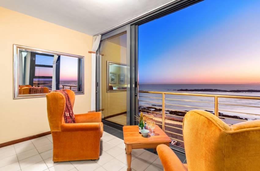 The apartment features a lovely seaside decor in shades of blue and green that effortlessly complements its beachfront setting. Ideal for holidaymakers or business travellers, this self-catered two-bedroom apartment showcases uninterrupted views of the Atlantic Ocean and Table Mountain from the lounge, enclosed balcony and main bedroom.
