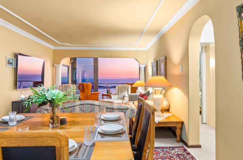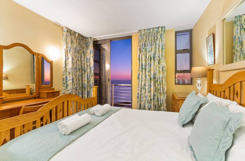 This spacious home features all amenities needed for an effortless self-catered holiday, including a full kitchen, a 6-seater dining area, a lounge with a flat-screen TV, free WiFi, and a compact enclosed balcony overlooking the ocean with casual seating for two. The main bedroom has a queen bed, and the second consist of a double, both accessing the shared bathroom featuring a shower.