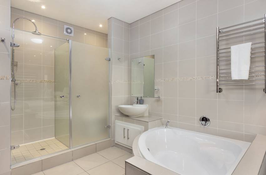 The Penthouse includes 3 generous and luxurious bedrooms and 2 bathrooms. The main bedroom has an en-suite and a smart TV with access to DStvNow and Netflix. All 3 bedrooms have built-in cupboards and air-conditioners to ensure a comfortable stay any time of the year. The main bedroom has an Extra Length King Size bed, the second bedroom an Extra Length Queen Size bed and the third bedroom 2 x Extra Length ¾ beds, ensuring luxurious sleeping comfort.