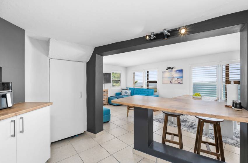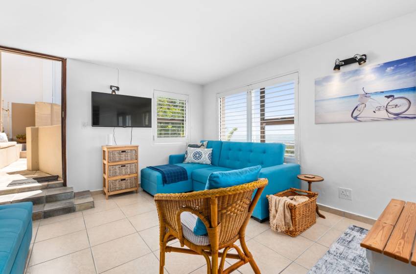 The apartment is designed with comfort and privacy in mind. While guests will share an entrance with the main house, the unit is completely secluded, ensuring a tranquil and uninterrupted stay. Inside, the open-plan living area merges seamlessly with a semi-equipped kitchen featuring a kettle, toaster, refrigerator, air-fryer and microwave, ideal for preparing light meals.
