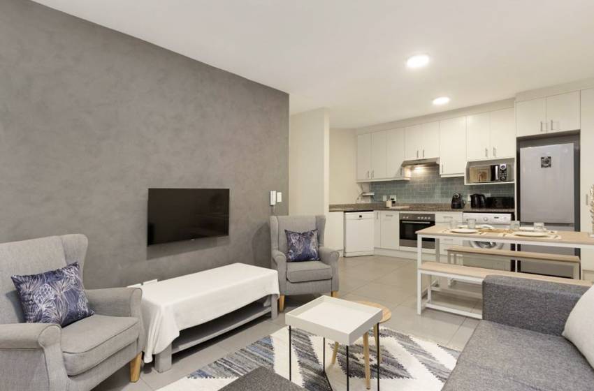 Boasting a prime location near the beachfront, guests can start their day with spectacular ocean views while the refreshing sea salt air and gently crashing waves awaken their senses. The apartment boasts an open plan main living area, consisting of a beautiful fully-equipped kitchen (with a dishwasher and washing machine), a cosy dining area and a lounge. Whether whipping up a delicious meal, relaxing on the couch while enjoying a good movie, or taking in a Cape Town sunset from the balcony, guests will have all they need for a perfect holiday!