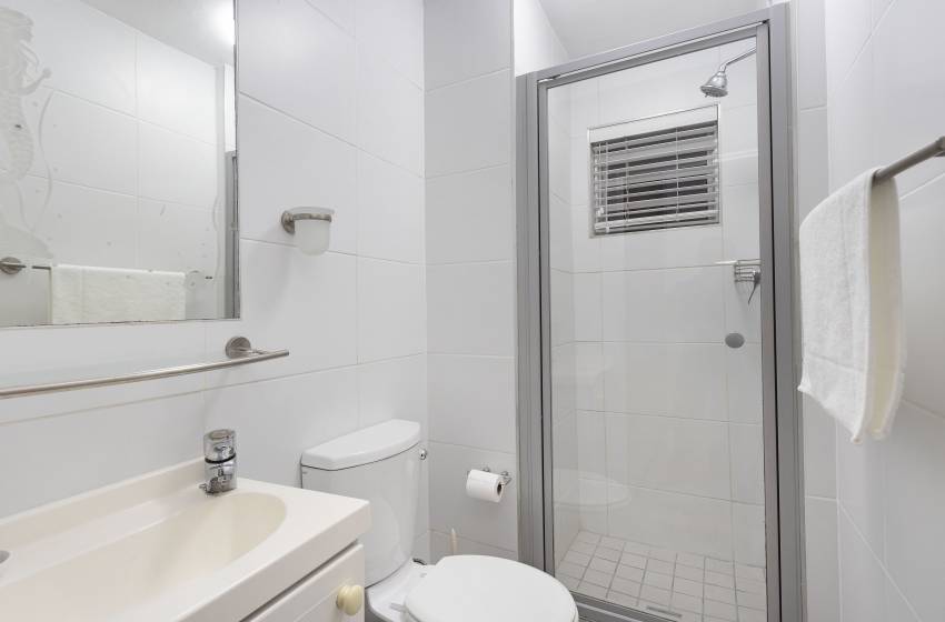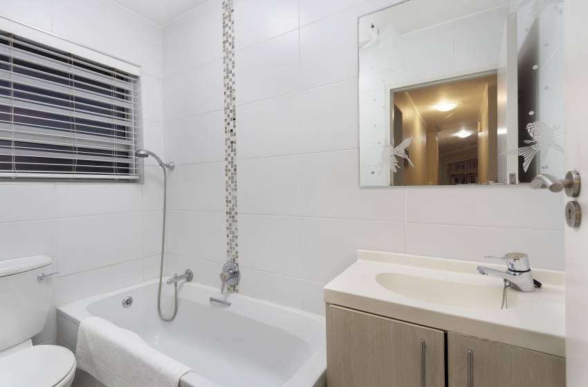 Able to comfortably accommodate up to 4 guests, this apartment has 2 decently-sized bedrooms with large windows and sea views. The master bedroom has a king bed, ample closet space and an en-suite bathroom with a shower. The second bedroom has a queen bed and built-in cupboards, accessing the shared bathroom featuring a bathtub.