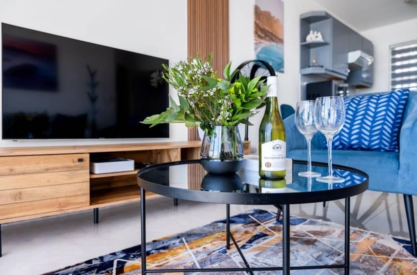 Situated in the beautiful mother city of Cape Town, in the popular suburb of Bloubergstrand, is this gorgeous self catering one bedroom apartment combining the perfect balance of seaside calmness and modern luxury. Everything your heart desires is literally on your doorstep or only a short distance drive from your accommodation. Ideally located, you will be walking distance from the stunning Blouberg Beach, popular beach side restaurants, bars, coffee shops. A few kilometers drive away you will find the bustling Eden on the Bay Centre right along Big Bay beachfront and shopping malls.