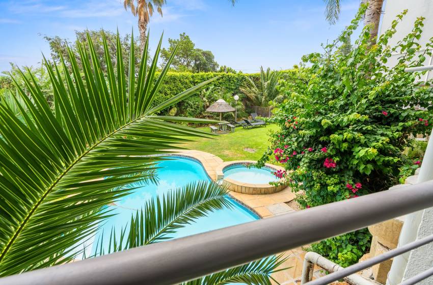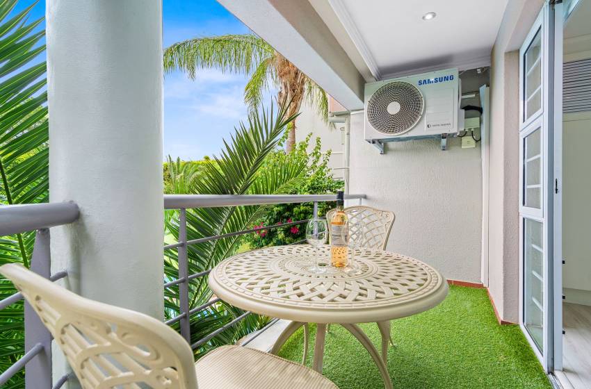 Additionally, the apartment is equipped with air conditioning in the lounge area, internet access, secure parking, and a washing machine and dryer for your convenience. Guests also have access to two communal swimming pools and a shared garden space, with all linen and towels thoughtfully provided for the duration of your stay.