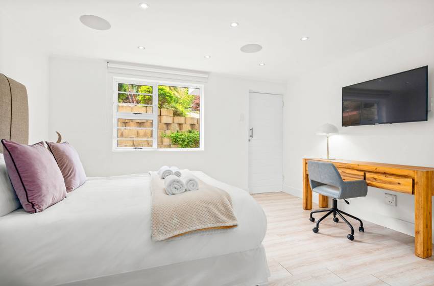 This stunning ground-floor studio apartment is situated in the upmarket suburb of Camps Bay in Cape Town and comfortably accommodates up to two guests. Camps Bay is known for its majestic beaches, natural rock pools and breathtaking views of the Twelve Apostles Mountains. You’ll also find a selection of upscale restaurants, cafés, and cocktail bars with views over the Camps Bay Promenade. Ideally located, guests will be within a short distance from The Promenade Mall and Theatre on the Bay, known for its productions of musicals, stage performances and comedy shows.