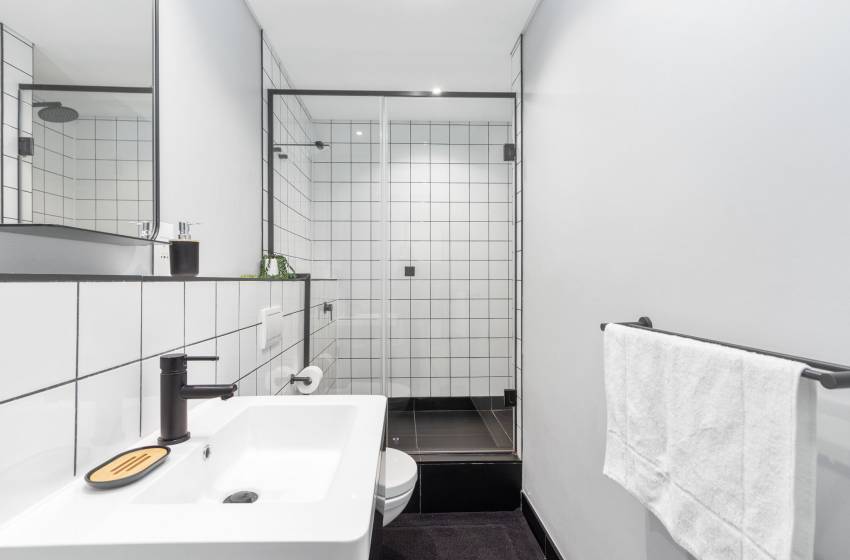 This compact yet chic apartment accommodates up to 2 guests and features 1 bedroom, a serene haven with a plush queen-size bed and an en-suite bathroom equipped with a shower, toilet, and washbasin.