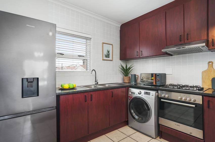 Upon entering the property, you'll immediately feel at home, as the inviting atmosphere created by warm décor and thoughtful furnishings welcomes you. The open-plan kitchen, fully equipped, enables easy meal preparation. The island is paired with bar stools, creating an inviting space for enjoying delicious family meals together. The property also features a washing machine for added convenience.