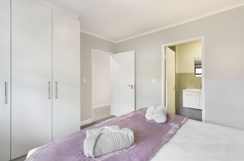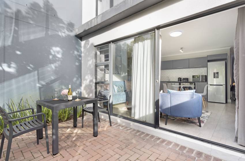 The apartment features an open plan design of the living space which includes a fully equipped kitchen with a dishwasher and washing machine for your convenience, a dining area seating 4 guests and a cozy lounge fitted with a flat-screen TV. Leading out from the living space is a gorgeous patio/garden area with outside furniture where you can sit and enjoy the serenity of the outdoors. The apartment is in a secure complex with remote control access and provides access to a swimming pool as well as braai facilities. The stylish bedroom in this unit offers a comfy queen size bed with fresh linen. The immaculate bathroom includes a shower, toilet, basin and clean towels.