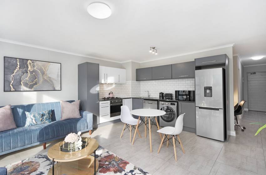 This elegant yet modern apartment offers its guests a tranquil space to relax and unwind. Located in the beautiful mother city of Cape Town, in the popular area of Century City you will be centrally located with convenience at your doorstep. The apartment is situated a short distance from the well-known Canal Walk Shopping Centre as well as The Century City park where you can enjoy the beauty of nature surrounding you.