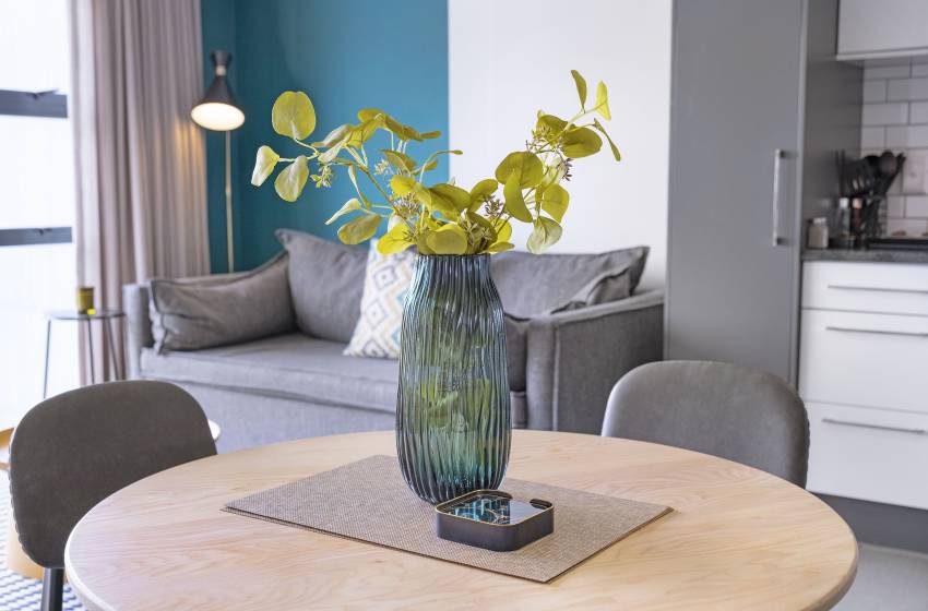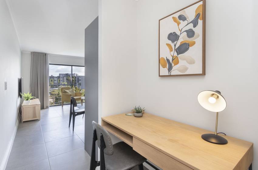 Modern open-concept flats in a nicely maintained building with amazing views. The self-catering apartment has a fully equipped with a fridge, microwave, oven, stove, toaster, kettle, and a smart television. This property provides internet access and has one bedroom and a bathroom. A communal pool and safe parking are all provided.