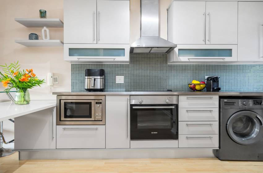 The modern kitchen is a standout feature, fitted with high-end finishes and fully equipped for a comfortable self-catering stay. In addition to the essentials, guests can enjoy the convenience of a coffee machine, air fryer, washing machine, and tumble dryer. High-speed fibre internet access and Netflix are also included, making it easy to stay connected or unwind with your favourite shows.