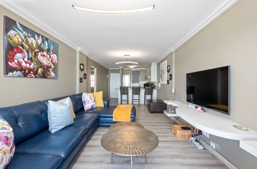 The apartment complex is only a few minutes walk from the beach. The building is accessed controlled, with secure parking available in an undercover parking bay for guests' safety. The coastal suburb of Bloubergstrand is a superb holiday destination with various establishments within walking distance of the apartment complex, some of them even facing the beachfront. Bloubergstrand ideally offers guests a convenient drive south to the Cape Town City Centre, while the luscious West Coast lies northward, featuring numerous charming towns and beautiful nature reserves to explore.