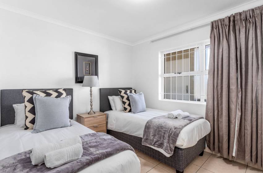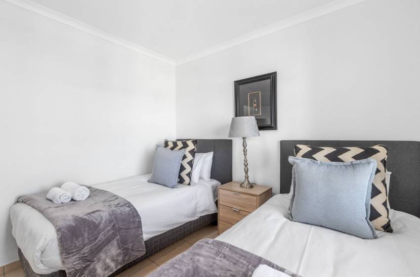 Welcome to The Waves 302, a stunning apartment offering a blend of comfort and style in the vibrant suburb of Table View, just north of Cape Town’s city centre. This family-friendly retreat accommodates up to 4 guests, featuring a luxurious king-sized bed in the master bedroom with an ensuite bathroom complete with a shower and toilet. The second bedroom offers two single beds and is served by a second bathroom with a bath and toilet.