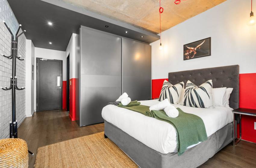 This urban-style studio apartment in Woodstock, Cape Town comfortably accommodates up to two guests.