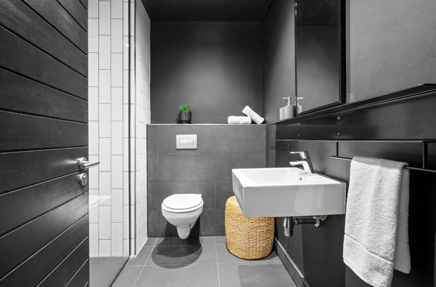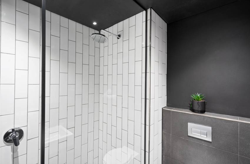 This one-bedroom flat has a glass-partitioned sleeping area with a comfortable queen-sized bed. An elegantly designed bathroom fitted with a toilet, washbasin with vanity, and a modern, walk-in shower. Fresh linen and towels are provided during your stay.